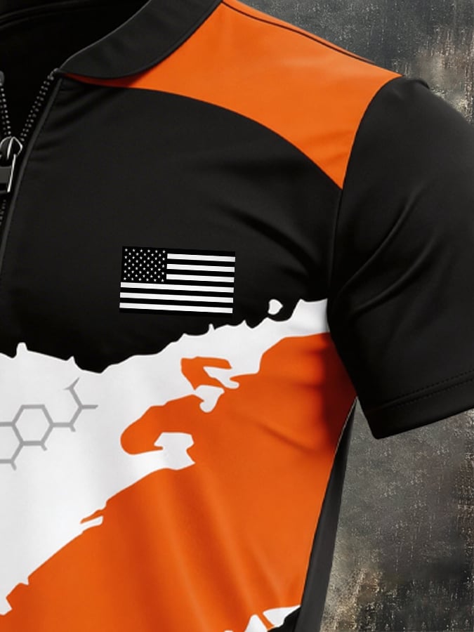 Men's Retro Patriot Color Block Polo Collar Short Sleeve
