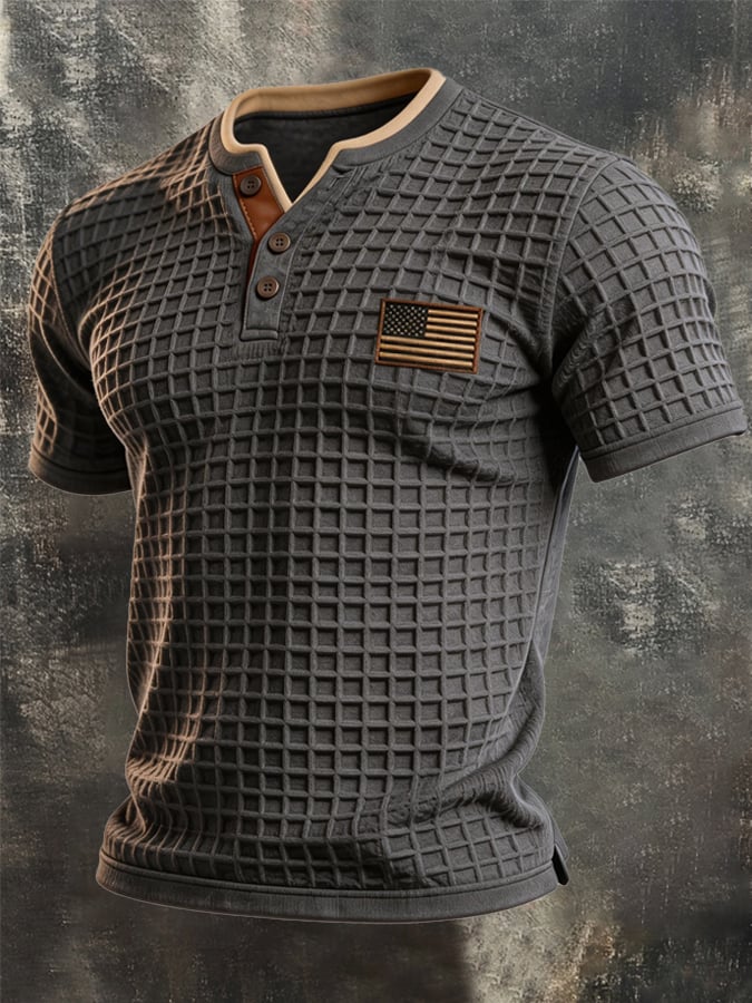 Men's Retro Textured Color-Blocked Polo Collar Short Sleeves